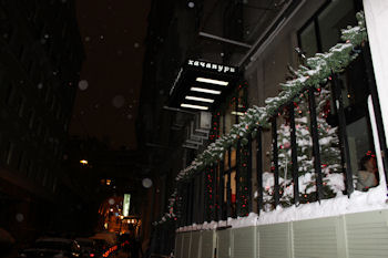 That night, we walked to Khatsupuri, a restaurant that we had enjoyed in October, and one that we had mentally noted as a good place to bring two little kids. It's a small, intimate place, with excellent Georgian food. They were great with the kids, bringing them gifts and toys to entertain while we ate. Kolya loved the soup that I ordered, and we ate bread filled with cheese, eggs, or spinach. All of it was fluffy and warm, and the trip was excellent.