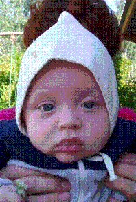 At first, I thought that the wild hair of the person holding the kid was his actual hair, and I found that a little frightening. For sure, they could use some advice on taking good photographs of children. What color is is hair? Does he even have hair? Would it have been too much trouble to wipe the spit off his mouth?