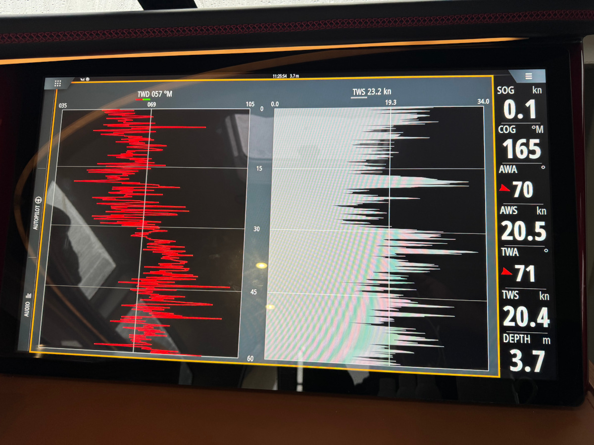 This shows that in the last hour, the average wind speed has been 19 kts, with gusts up to about 32.
