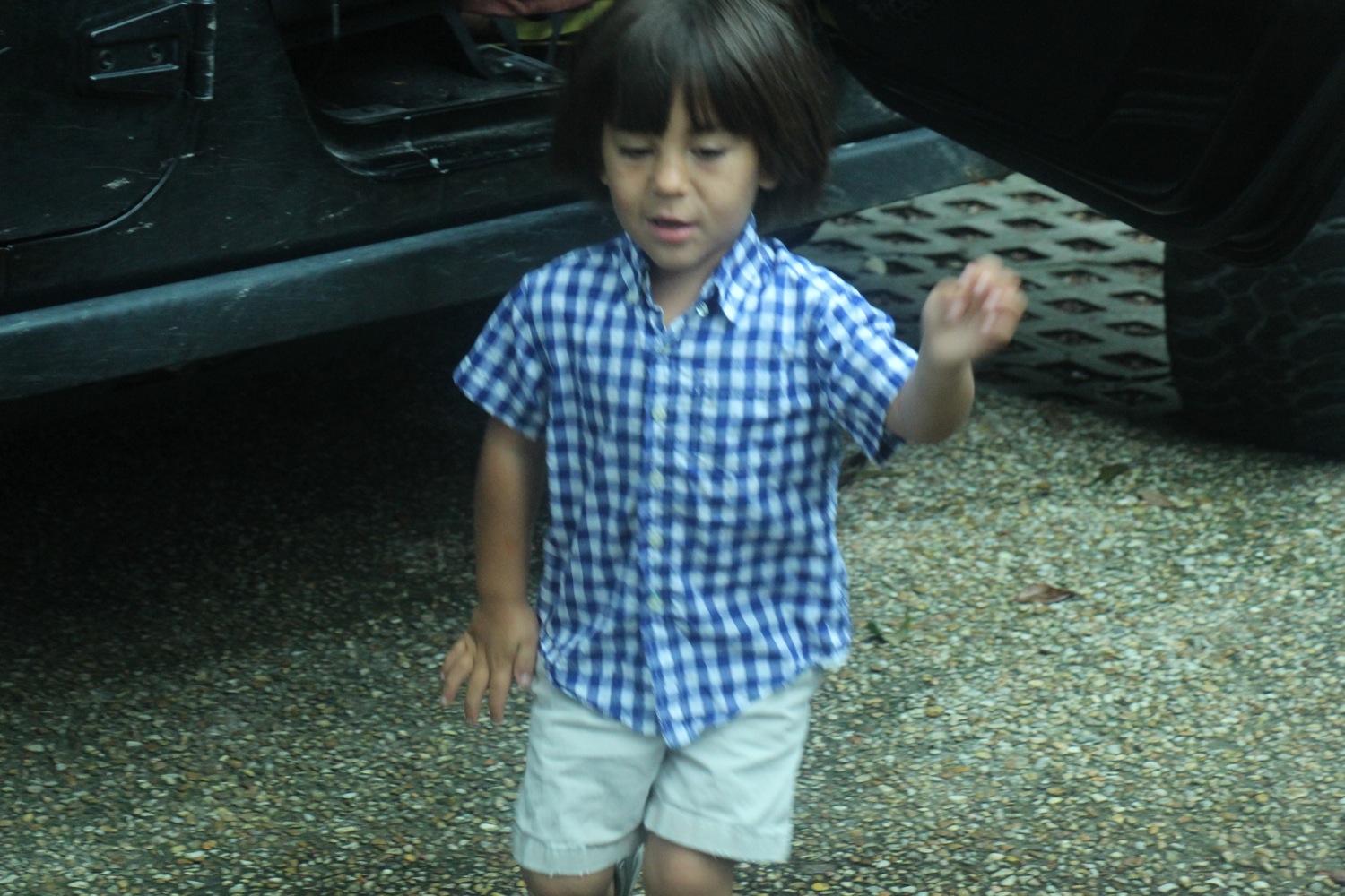 Not long after that, he realized that he was really going to school, and going without the rest of us. After that, it was hard to get a first day of school picture. Here, he came into the room and didn't know that there was a camera around.