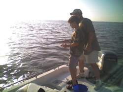Sam reels in a giant redfish.