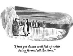 ![]() The Rejection Collection: Cartoons You Never Saw, and Never Will See, in The New YorkerI can't wait to make my way to the bookstore, drop down into a big fluffy seat, and amuse myself with this offering for a few hours. I would strongly recommend that you purchase this book to keep near the commode in your guest bathroom.From the exhibits that I can see on Amazon, these were cartoons that were rejected because they were crude or insulting. What could be better. When I was a kid, my family had a big coffee-table book of New Yorker cartoons in one of the bathrooms. I bet every single one of us read every single cartoon dozens of times -- almost all of which occurred while taking a dump. I only remember a couple. They were the ones with cuss words. Since I remembered the captions entirely, I had no problem finding them on cartoonbank.com. I'm happy to reproduce them here -- at least until I get a nasty letter from New Yorker attorneys. ![]() ![]() I'm anticipating a whole book of cartoons that are even better. Look at it this way. Someone kept them around for all these years to compile them for a book. They aren't the ones that were rejected because they were stupid. And by "stupid", I mean more stupid than the average New Yorker cartoon. |