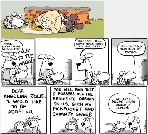 (By the way, old comic strips don't necessarily mean bad ones. Blondie still delivers from time to time. Blondie is the anti-Cathy: confident and sexy, owns her own business, is not an overbearing wife, but one who can prod her husband to take up the (very) occasional weekend chore. Likewise, the Peanuts reruns that run every day are really good. Sure, you should be able to pick really good comics from a library of 50-years of strips, but they stayed good throughout the run, I think.)