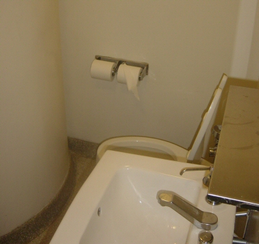 One night, we went to eat at a dive of a restaurant on River Road way outside of Baton Rouge. The sit-down toilet in the men's room was jammed into a corner due to lack of space. They had a makeshift stall around it, and that stall had a little, angled door. But the door was hung in a way so that the bottom of the door would come to about mid-chest as you sat on the can. So the door would protect your identity, but it would be not so useful in truly protecting your privacy.
