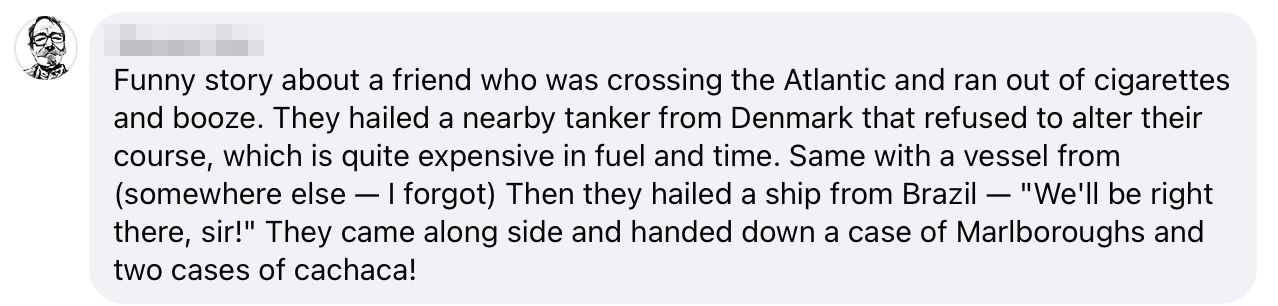 The only one from the group that I met in person was my buddy Rummy. He sailed on Lake Hartwell, which wasn't especially far from where my sister lived back in the day, so on one visit, I abandoned the family to drive a couple of hours and sail with an internet stranger. We each brought a bottle of Mt Gay out on the lake, and the only way I know we got home is that I'm still here to tell the tale.