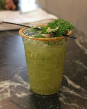 Tomatillo Marys are similar to a Bloody Mary, but they use fresh tomatillos instead of tomato juice. With Mrs. theskinnyonbenny's, you can taste fresh cilantro and limes, and the pepper infused vodka gives it a kick. I started my day with four of these.