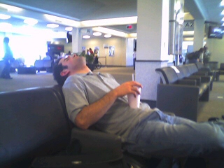 My coworker, waiting for the plane on Monday mid-day.