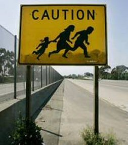This sign on the highway is really an advertisement for XMen 3: Caution: Shape Changer Mutant May Turn From Little Girl Into Short Man