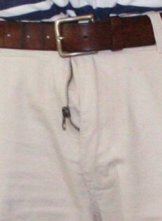 File under, "You get what you pay for." This is the zipper on a $7 pair of pants, on about the fourth or fifth wear. I was later able to repair the zipper myself.
