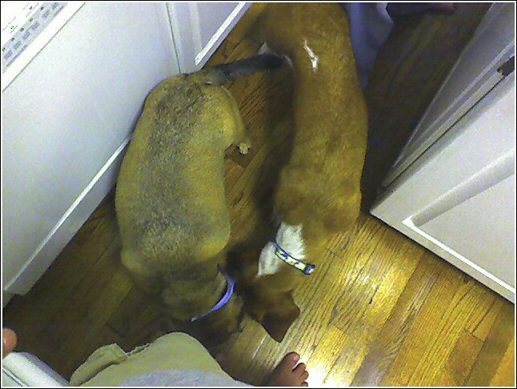 One long dog, one fat dog.