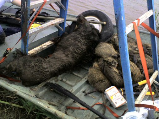 This is the whole haul of nutria, plus a wild hog that they surprised.