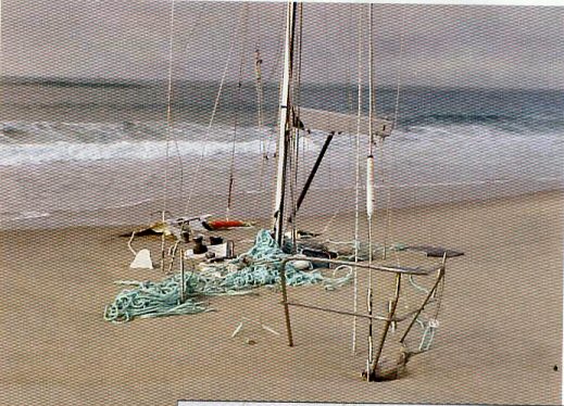 This is from Boat US Magazine in March 2007. The captain of this sailboat was navigating the North Atlantic using a hurricane tracking chart instead of a real nautical chart. He ran aground on an island that wasn't indicated on his hurricane chart, and all the tugboats in Canada couldn't pull him off. Today, the sand has washed through it to the point where the deck is even with the beach.