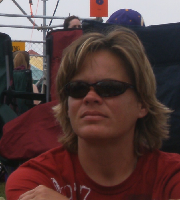 The great thing about digital photography is that you can take a picture of something mundane, while getting something interesting in the background, then crop out the mundane later. Here, a member of the pack of lesbians in front of us does her best to look like John Cougar.