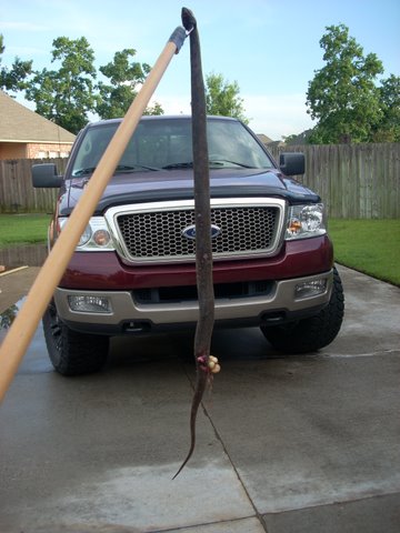 My buddy Jeremy -- who has provided many a dead nutria to grace my pictures of the day -- saw this monster dart into his garage as he was leaving for work one morning. Of course, the rest of us would have immediately put our houses up for sale, but this snake chose the wrong home to haunt. (More of this story tomorrow.)