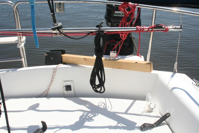 A couple of weeks ago, I went out for a sail. I didn't remember until we got to the boat that our tiller was back home in my shop, having been recently re-varnished. Fortunately, there were 2x4s avaialable.