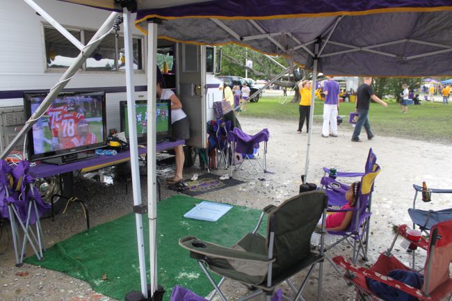 I held this one out of the the LSU Florida Tailgate photo gallery, but it's a great picture, and it was a hard one to capture. While everyone else was gathered around watching the paramedics and the drama, Campbell sat by herself and watched a football game.