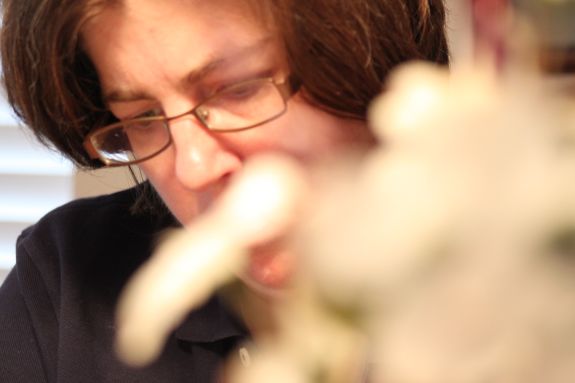 Mrs. theskinnyonbenny reads the paper behind a plant.