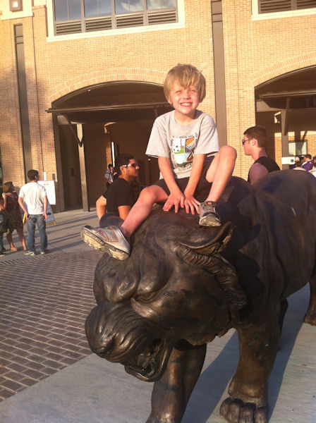 Before a baseball game at the Box.