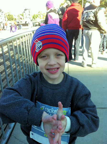 Getting ready to line up for Rocketkidz marathon, a one mile race that's part of the Louisiana marathon.