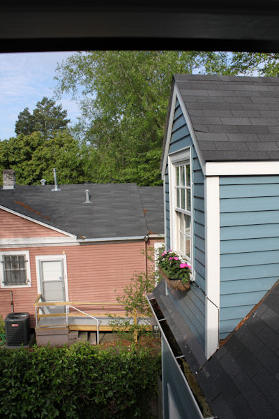 The view of Kolya's dormer, from the upstairs play room.