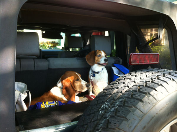 This is how the dogs have to roll a lot of the time, now that the backseat kid population has doubled.