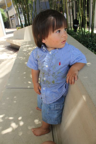 On our recent trip to Houston, Kolya was so bad in a Spanish restaurant, that he and I had to get out of there early. His shirt bears the marks of Spanish rice to this day.