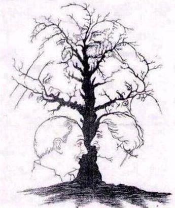I think there are nine faces that you can find in this tree.