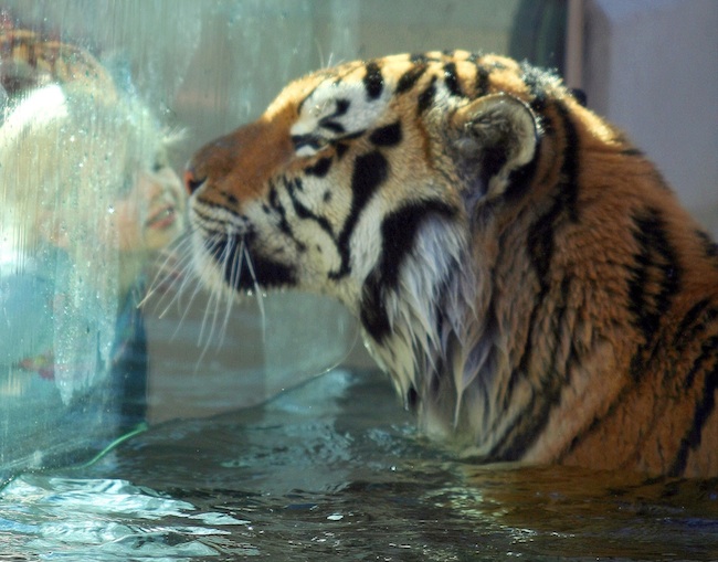 Mike the Tiger loves his visitors.
