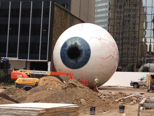 A friend posted a picture of this giant eyeball at a construction site in Dallas. I don't have any explanation, but what a wonderful pic.