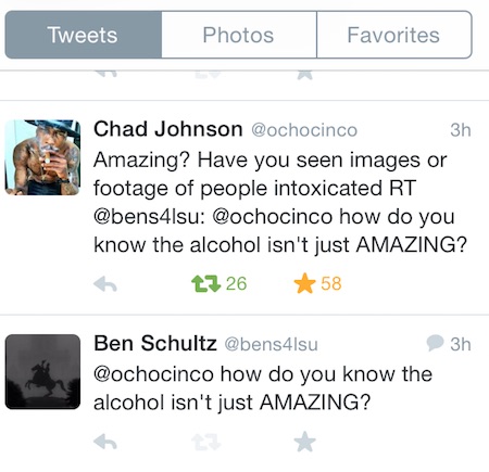 My twitter blew up one day last week when I questioned Chad Ochocinco's lifelong aviodance of alcohol, and then got a reply. I had a reply that itself would have generated more RTs and likes than I've ever had on Twitter. Maybe this is the year I hit triple digit followers. You can be in on this, you know.