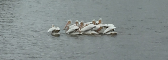 Back to original photos, this a bad phone one in the rain, of the white pelicans that visit every winter. This was as close as I've gotten without running them off.