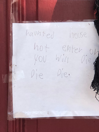 I knew just which kid added this to the Halloween decoration just from the "DIE DIE DIE." #dark6YearOlds