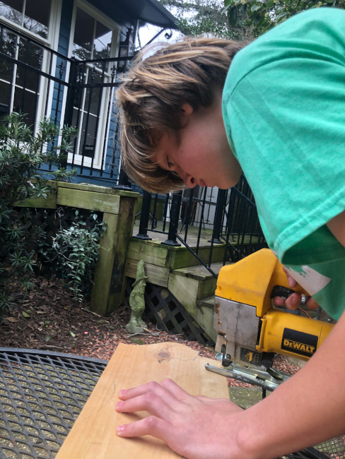 V, building out the model for his design project at school.