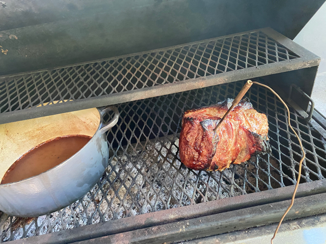 One day, I barbequeued a pork butt while working outside.