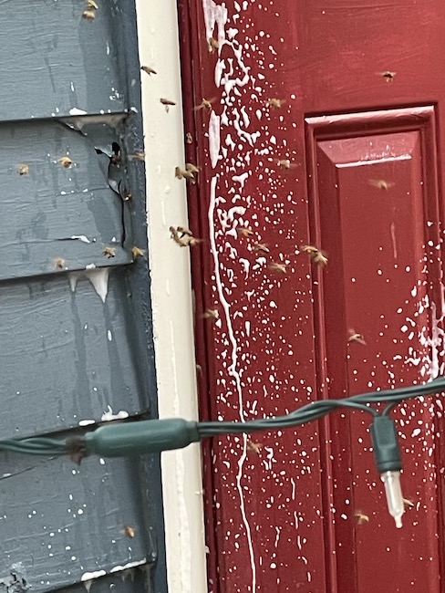 We had a herd (not the right word) of bees find a soft spot in the siding and make a hive there. It took a week and a half of poisoning them to get rid of them all.