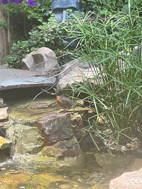 Robin bathing in our pond.