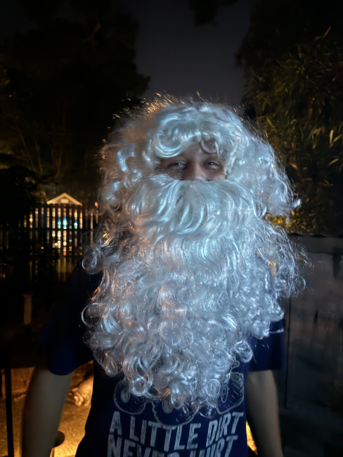 V still loves him a costume. The other night, he kept coming outside in one after another, getting Rosie riled up to bark at the stranger every time.
