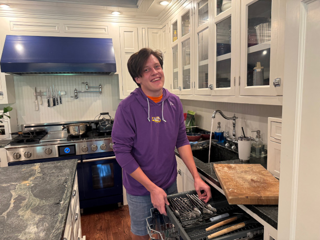 I made up a song about V loving to do the dishes, but he wouldn't let me make a video, as he claimed that the statement is false. I did sneak a photo though.