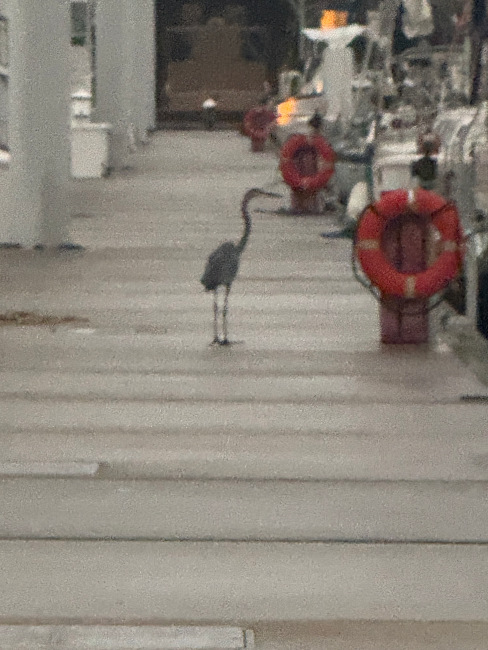 This is blurry, but I was hanging out on the dock with a blue heron this week.