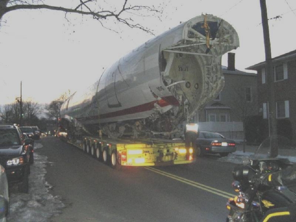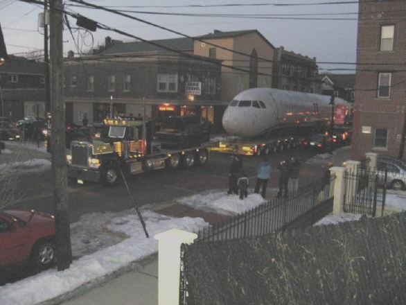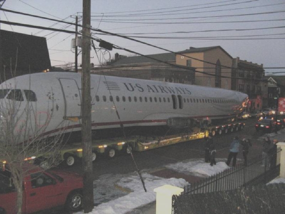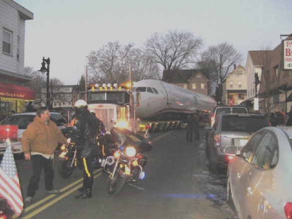 Here are some really cool photos that I slept on posting for a few months. When they pulled that plane out of the Hudson River, they hauled it through the streets of New Jersey. Shelly sent me pics. I'm not sure if she took these or someone else, but I haven't seen them anywhere else in my internet browsing.