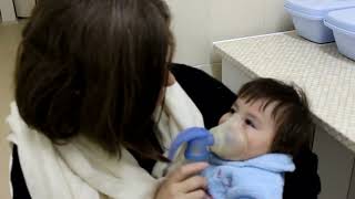 After we played with Kolya for quite a while, they told us that it was time for his "massage." We thought that meant that it was time to go, but instead, we got to follow the lady up to a room with machines and a mask to put over his face.