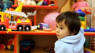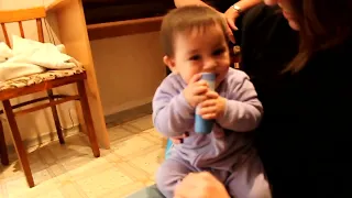 In this video, we finish our apple foam (for the brain!) while sitting at a baby table. We are startled by an accordion player who only plays one note.