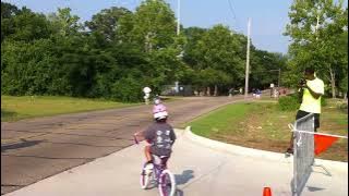 This is from the RocketKidz triathlon on June 11, 2011. We had been trying to learn to ride the bigger bike without training wheels, but it wasn't ready for race day. Vanya couldn't have been much slower on the bike part of the race, but he was having fun. I wish you could make out the smile on his face better as he passed.