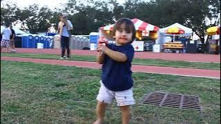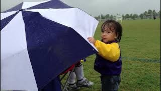 Baby K enjoys playing with the umbrella. This is during one of V's soccer games. He's playing wiht one of the other kids on the team who (obviously) isn't in the game at the time this is taken.