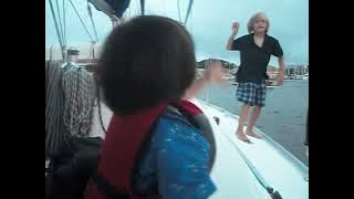 The most important thing to notice here is the Run DMC playing through the bluetooth speaker that the baby is flinging around so carelessly. For some reason, Heather's phone was a HUGE Run DMC fan this Summer. Aside from that, it's a simple clip of life at anchor.