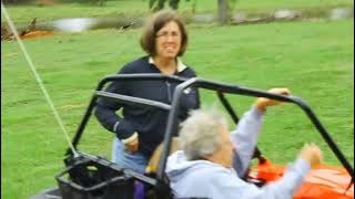This video is his first trial/training run in the new ride. Part of the fun is watching all of the bewildered farm dogs.