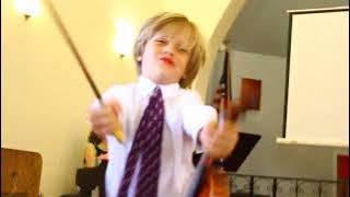 This video is of his entrance. You can only see the back of K's head -- he's sitting in a teacher's lap right in front of us. He wasn't fooled either.